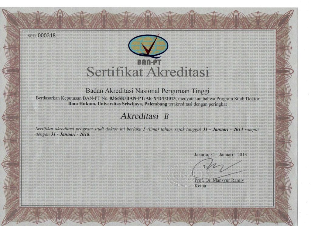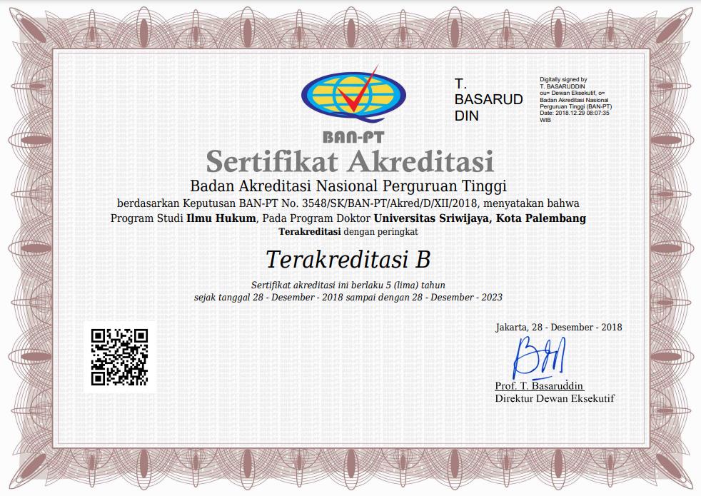 SERTIFIKAT AKREDITASI PROGRAM STUDI DOKTOR ILMU HUKUM