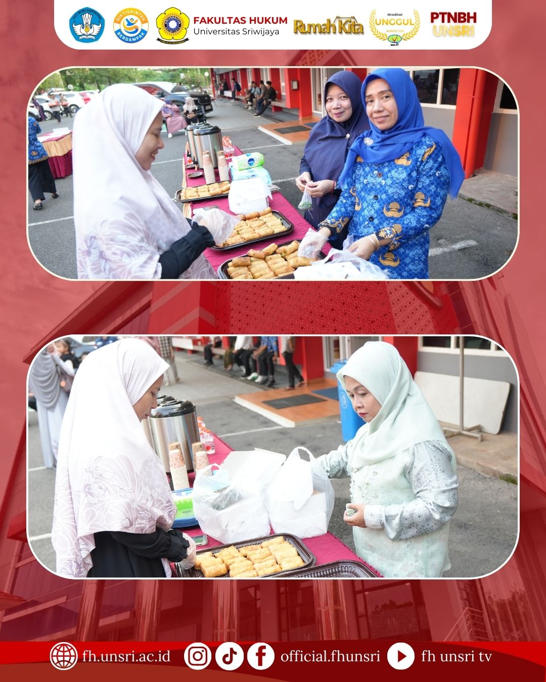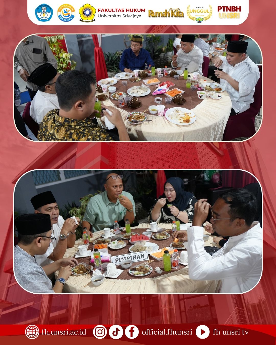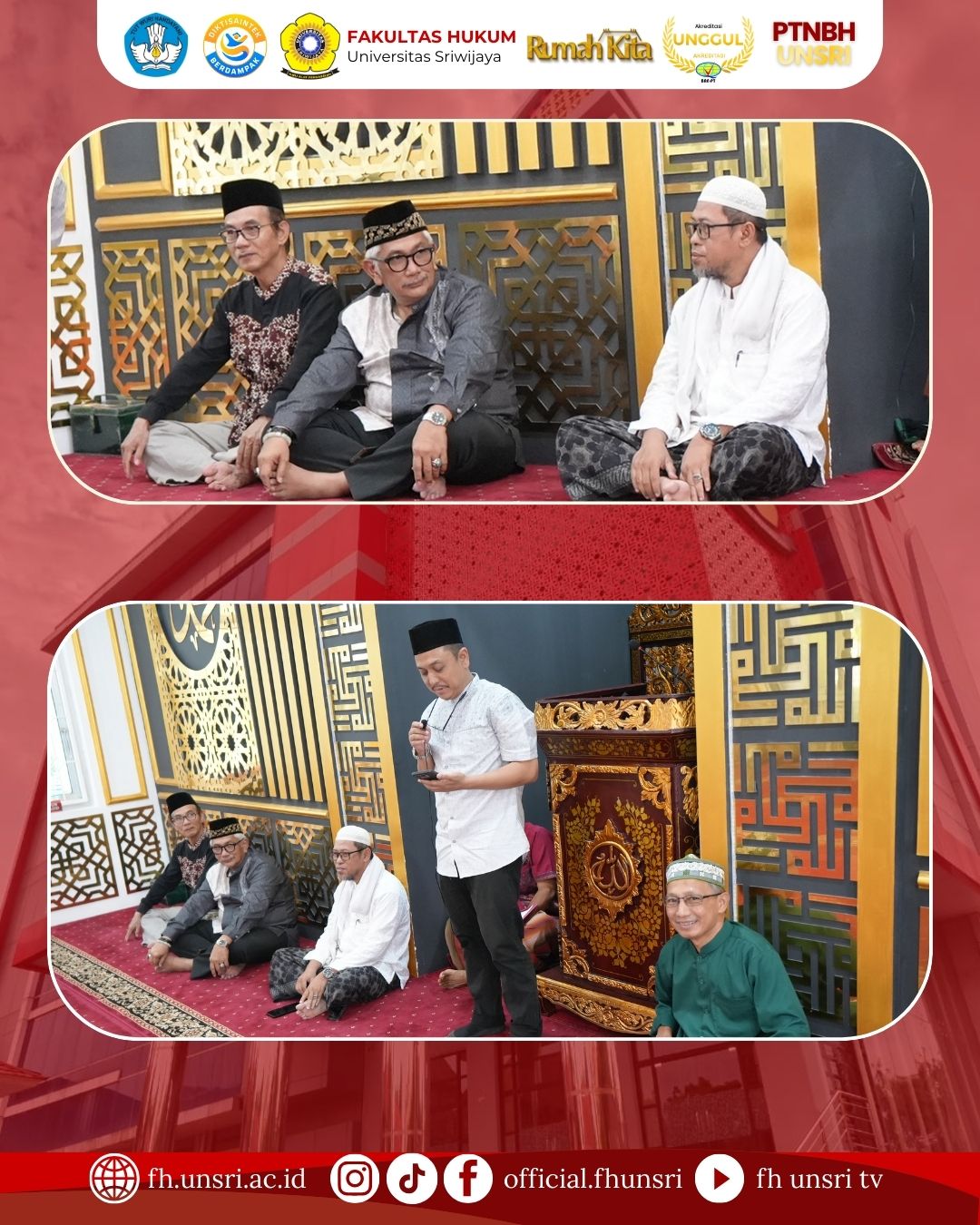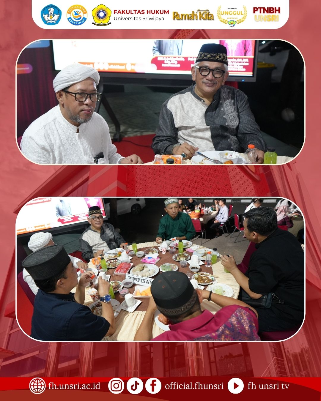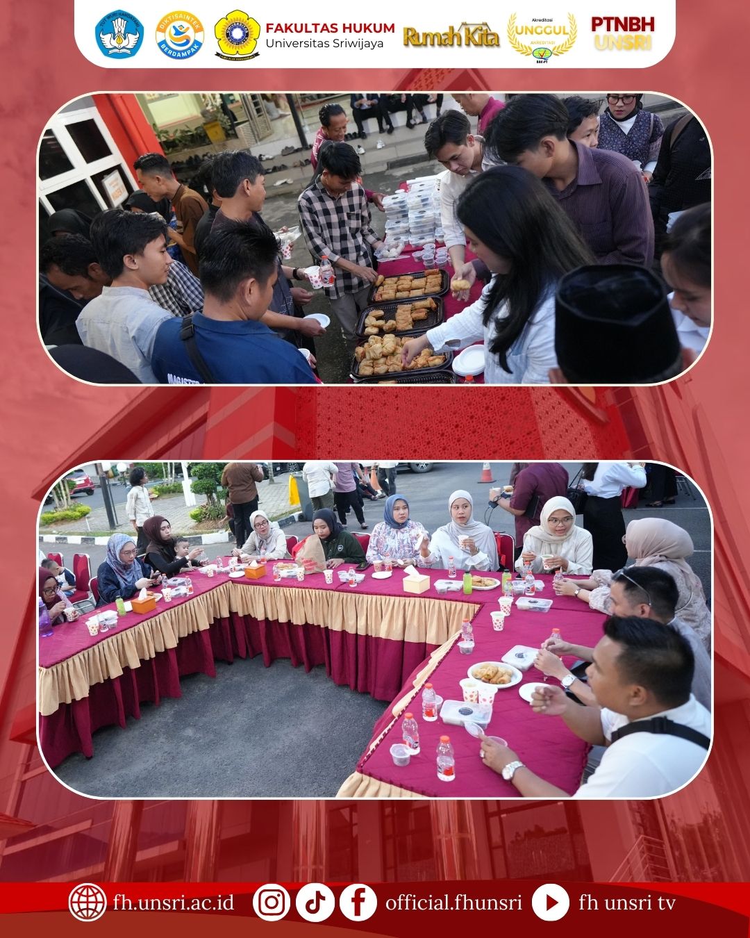 Fakultas Hukum Universitas Sriwijaya menyelenggarakan kegiatan buka puasa bersama yang dihadiri oleh dosen, pegawai, mahasiswa, serta alumni dalam rangka memperingati Nuzulul Qur’an pada bulan suci Ramadhan 1447 Hijriah. Kegiatan yang berlangsung penuh kebersamaan dan kekhidmatan ini dilaksanakan pada Kamis, 12 Maret 2026 mulai pukul 16.00 WIB hingga selesai, bertempat di Masjid Baitul Mizan Fakultas Hukum Universitas Sriwijaya.
