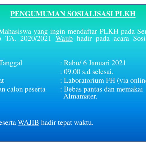 Diberitahukan kepada Mahasiswa/i Fakultas Hukum Universitas Sriwijaya yang berminat untuk mendaftar di program PERMATA SARI harap mengikuti prosedur sebagai berikut: