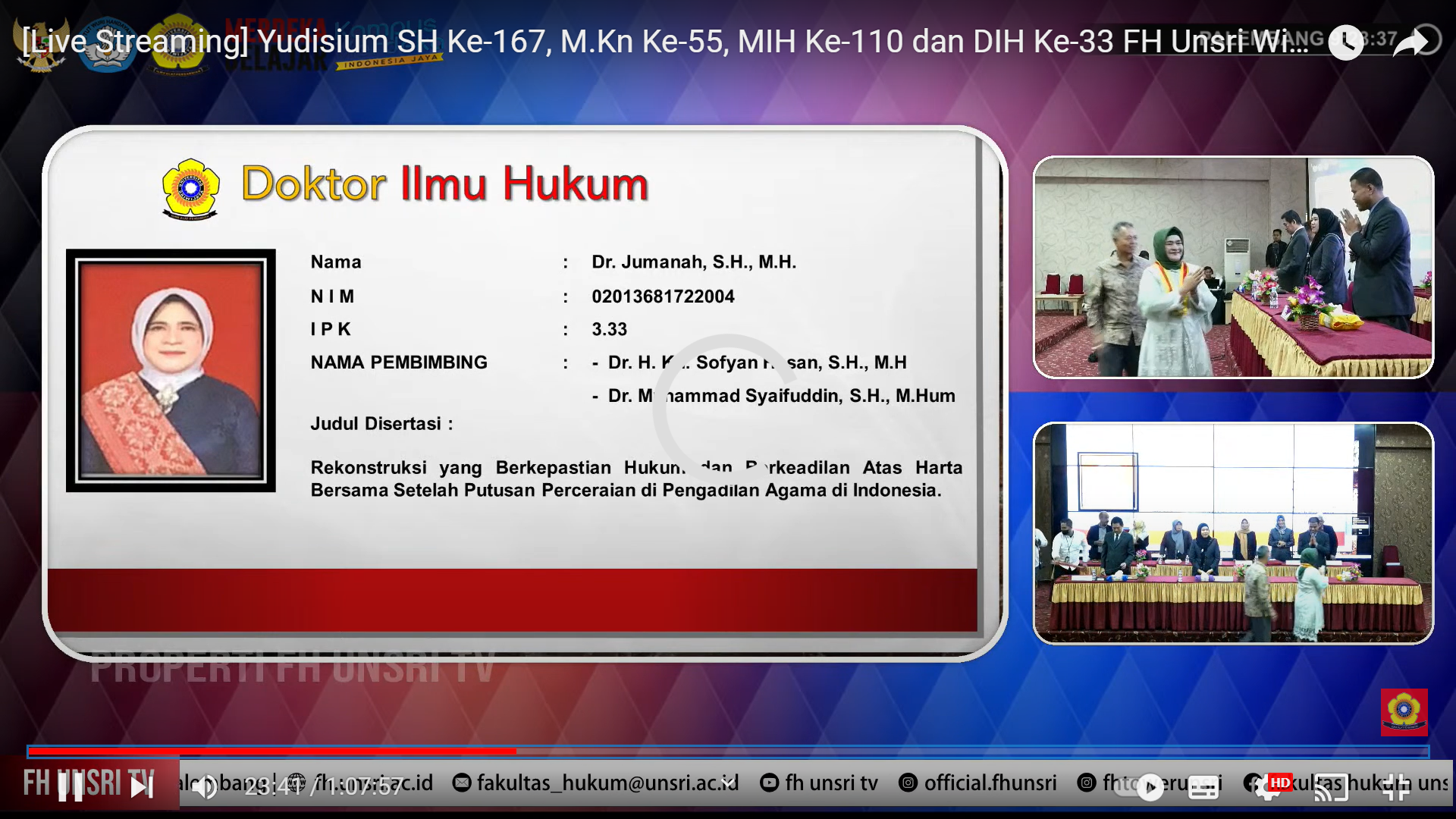 Video Yudisium Fakultas Hukum Unsri | Tgl 17 Februari 2024 https://www.youtube.com/watch?v=Trvhncvoiwg
